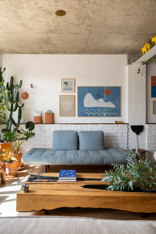 Na visita do Histórias de Casa ao apartamento da arquiteta Carolina Gurgel e do designer Pedro Luna, o que chama atenção logo de início é a presença marcante da arte brasileira nas paredes. O casal, que projetou cada detalhe do lar a quatro mãos, escolheu os quadros da BOEMI para traduzir em arte o estilo e as memórias que compõem sua história.