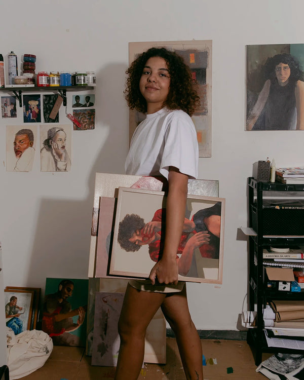 Além de artista, atua como educadora na rede estadual de ensino, experiência que permeia de forma significativa seu processo criativo. Essas duas atividades, educação e ateliê, estão profundamente trançadas e se retroalimentam. Por isso, questões de identidade e as sutilezas da infância e da adolescência são recorrentes em seu trabalho, assim como as formas pelas quais essas dimensões se manifestam no presente.