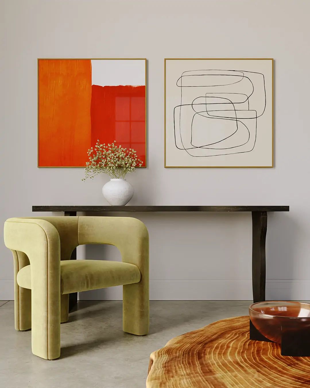 Nossas composições de quadros decorativos unem design exclusivo, impressão de alta qualidade e molduras premium. Composta por 2 quadros, esta seleção é versátil e ideal para sala de estar, quarto, escritório ou projetos de interiores, valorizando cada ambiente com sofisticação. Uma composição que transforma espaços com arte e personalidade.