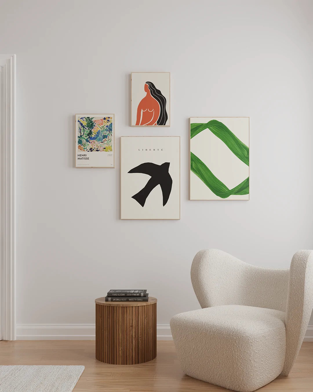 Nossas composições de quadros decorativos unem design exclusivo, impressão de alta qualidade e molduras premium. Composta por 4 quadros, esta seleção é ideal para sala de estar, quarto ou projetos de interiores que buscam leveza e inspiração. Uma composição que convida a desacelerar e transforma o espaço em um refúgio de arte e serenidade.