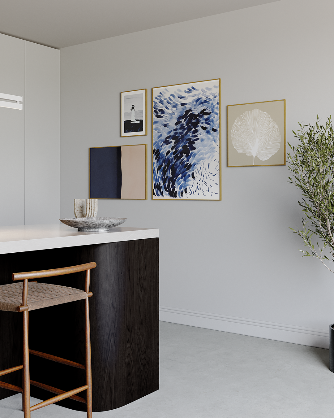 Nossas composições de quadros decorativos unem design exclusivo, impressão de alta qualidade e molduras premium. Composta por 4 quadros, esta seleção é ideal para sala de estar, quarto ou projetos de interiores que buscam leveza e inspiração. Uma composição que convida a desacelerar e transforma o espaço em um refúgio de arte e serenidade.