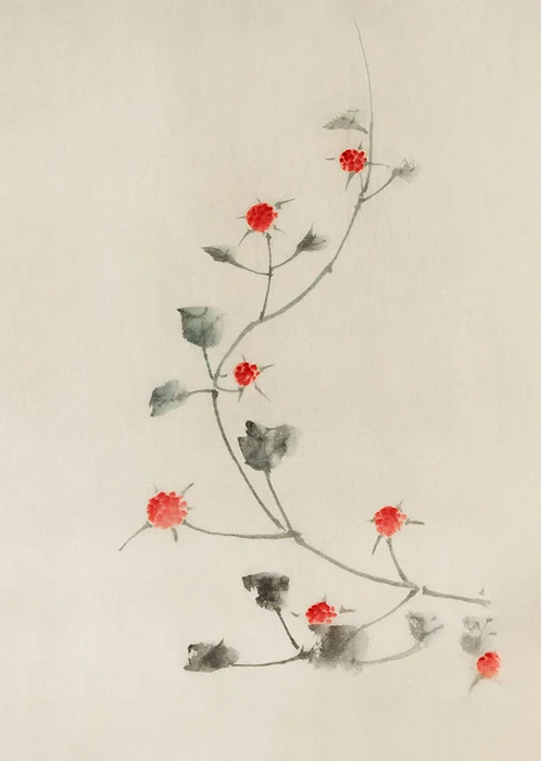 Small Red Blossoms On A Vine by Katsushika Hokusai
